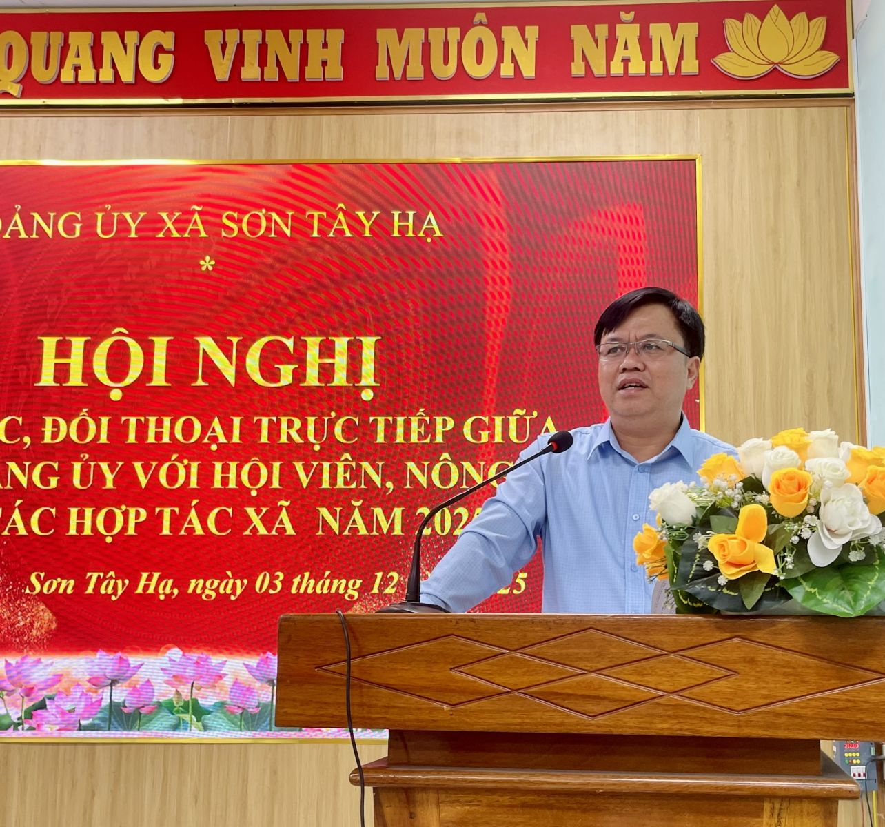 Chiều ngày 03/12/2025, đồng chí Cao Quốc Tiến, Bí thư Đảng ủy, Chủ tịch HĐND xã đã chủ trì Hội nghị đối thoại trực tiếp với Hội viên, nông dân và các hợp tác xã trên địa bàn. Hội nghị nhằm lắng nghe tâm tư, nguyện vọng của hội viên, nông dân và các hợp tác xã, trao đổi, giải đáp những vấn đề liên quan đến chính sách hỗ trợ phát triển sản xuất, nhất là trong lĩnh vực nông nghiệp.