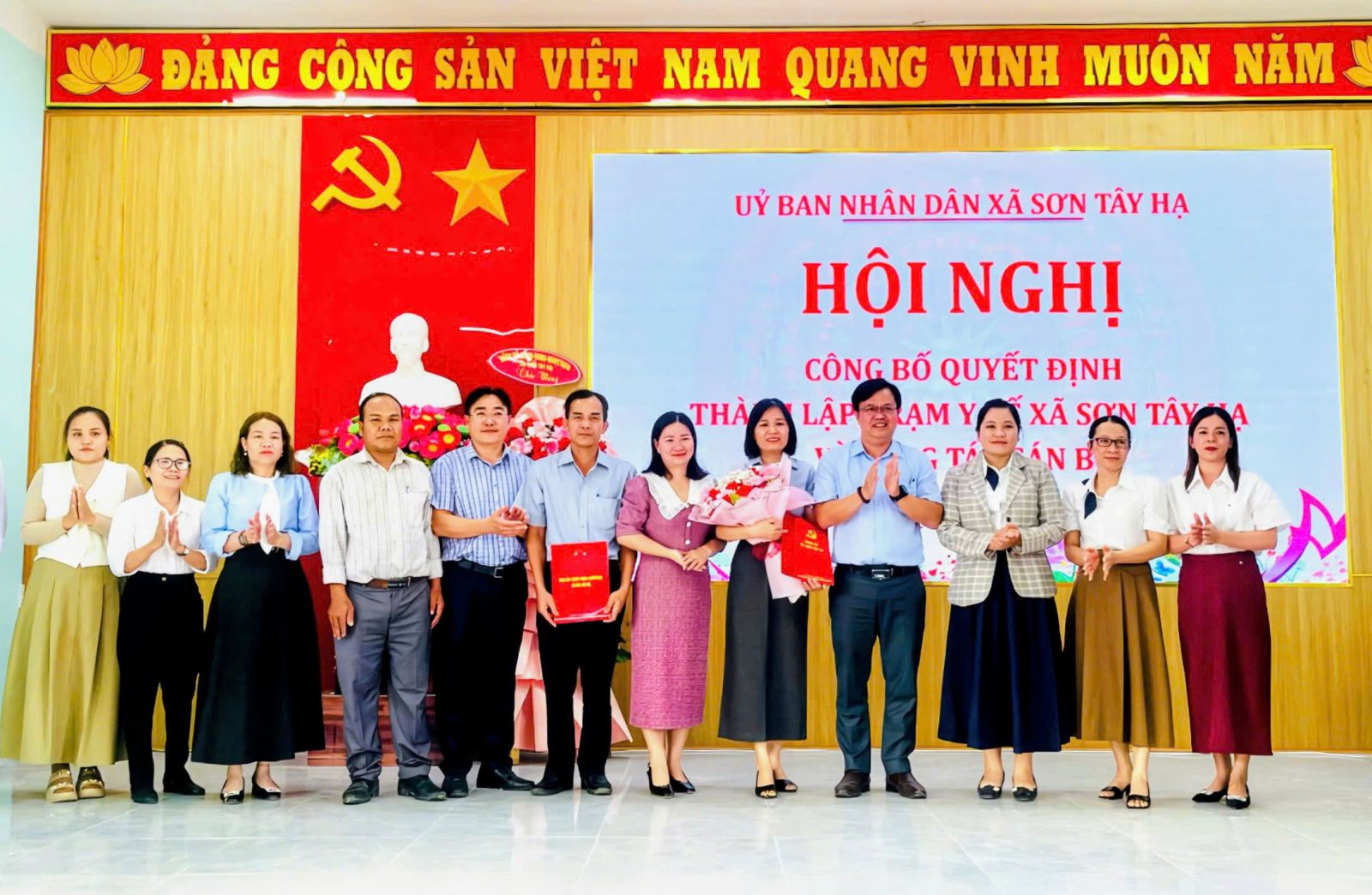 Tại hội nghị, UBND xã đã công bố Quyết định thành lập Trạm Y tế xã Sơn Tây Hạ; Đồng thời, công bố Quyết định bổ nhiệm bà Phạm Thị Kim Loan giữ chức vụ Giám đốc Trạm Y tế xã Sơn Tây Hạ và ông Đinh Văn Ná giữ chức vụ Phó Giám đốc Trạm Y tế xã Sơn Tây Hạ. Hội nghị cũng công bố các quyết định thành lập Chi bộ Trạm Y tế xã Sơn Tây Hạ, góp phần kiện toàn tổ chức bộ máy và tăng cường sự lãnh đạo của Đảng trong lĩnh vực y tế cơ sở.
