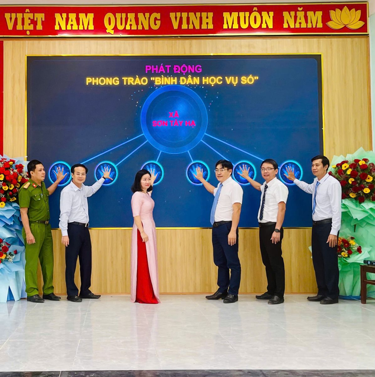 Tại lễ phát động, UBND xã Sơn Tây Hạ đã đề ra mục tiêu cụ thể đến năm 2026: 100% cán bộ, công chức, viên chức và người lao động được trang bị kiến thức, kỹ năng số, sử dụng tốt các nền tảng và dịch vụ số; 100% học sinh từ cấp tiểu học có kiến thức, kỹ năng số phục vụ học tập, nghiên cứu và sáng tạo; 100% người dân trưởng thành có tri thức cơ bản về chuyển đổi số, sử dụng được thiết bị thông minh; Phấn đấu 75% người dân trong độ tuổi trưởng thành được xác nhận đạt phổ cập tri thức chuyển đổi số, kỹ năng số trên nền tảng VNeID; • 100% người lao động trong các doanh nghiệp, hợp tác xã có kiến thức và kỹ năng công nghệ số phục vụ sản xuất, kinh doanh, góp phần nâng cao năng suất lao động.