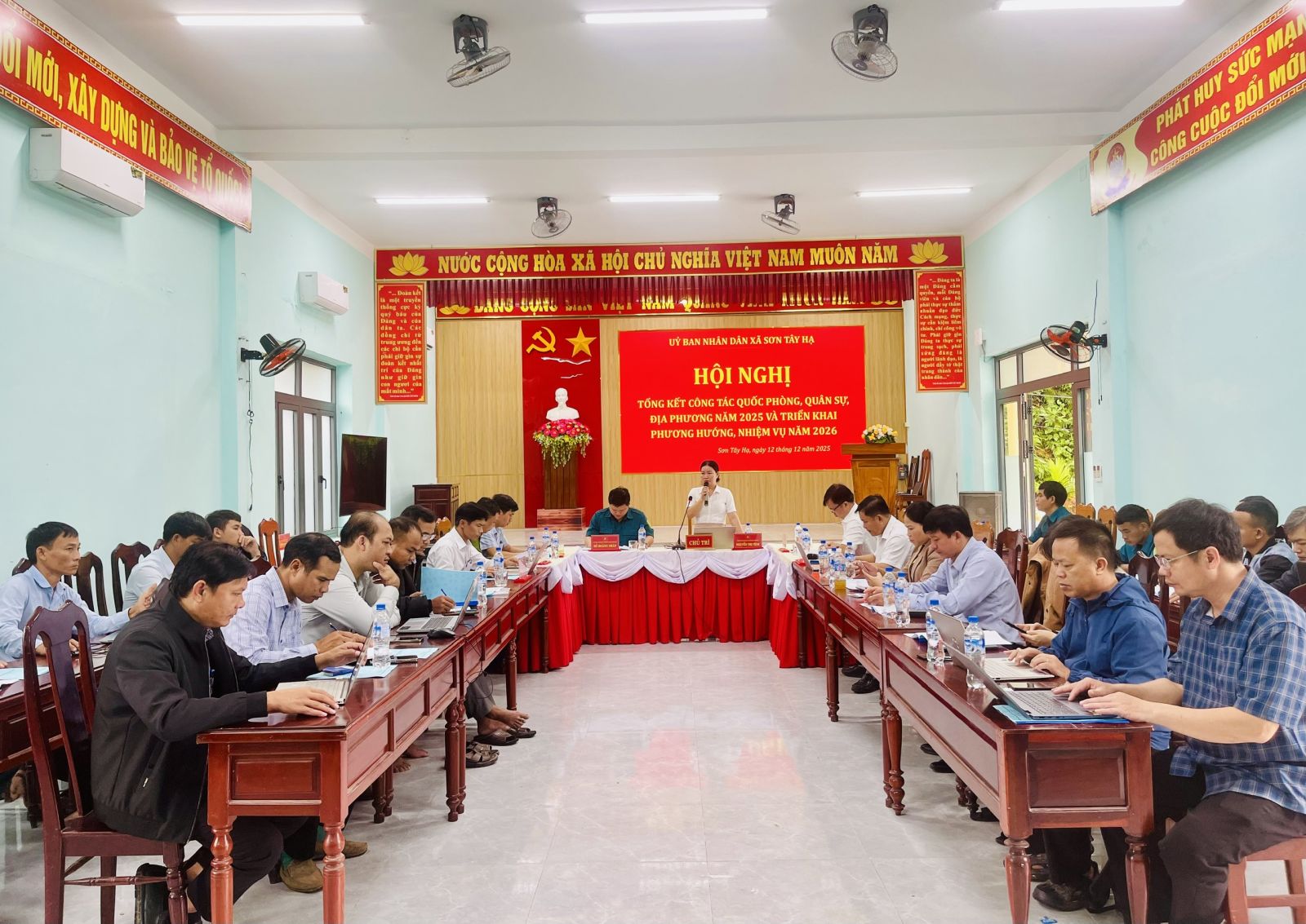 Sáng ngày 12/12/2025, UBND xã Sơn Tây Hạ tổ chức Hội nghị tổng kết nhiệm vụ quốc phòng, quân sự địa phương năm 2025 và triển khai nhiệm vụ năm 2026. Tham dự Hội nghị có đồng chí Cao Quốc Tiến – Bí thư Đảng ủy, Chủ tịch HĐND xã. Đồng chí Nguyễn Thị Tình – Phó Bí thư Đảng ủy, Chủ tịch UBND xã và đồng chí Hồ Hoàng Nhân – Chỉ huy trưởng Ban Chỉ huy Quân sự xã chủ trì Hội nghị.